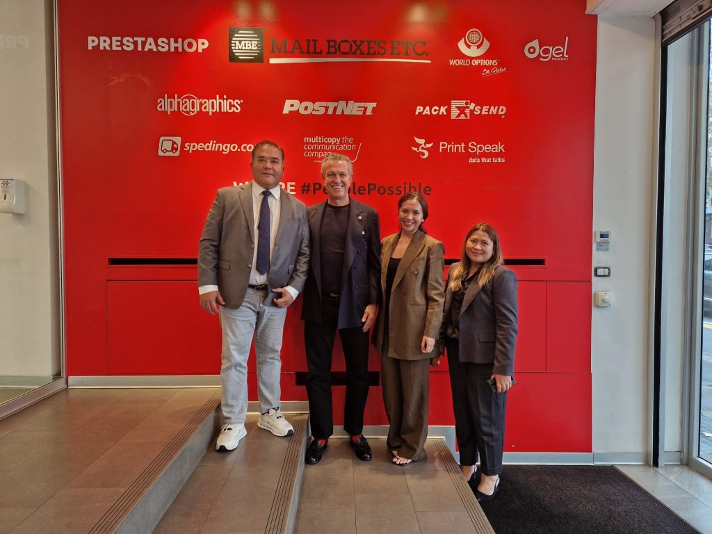 To prepare for the brand’s local launch, members of the Philippine team traveled to Italy, where they underwent intensive operational and franchise training at Mail Boxes Etc. Italia. The program equipped the team with the systems, standards, and service frameworks that have made the brand a trusted provider of shipping, printing, and business support services worldwide. The CBPi delegation also had the honor of meeting Paolo Fiorelli, Chairman and CEO of Fortidia, the parent company of Mail Boxes Etc. Worldwide.